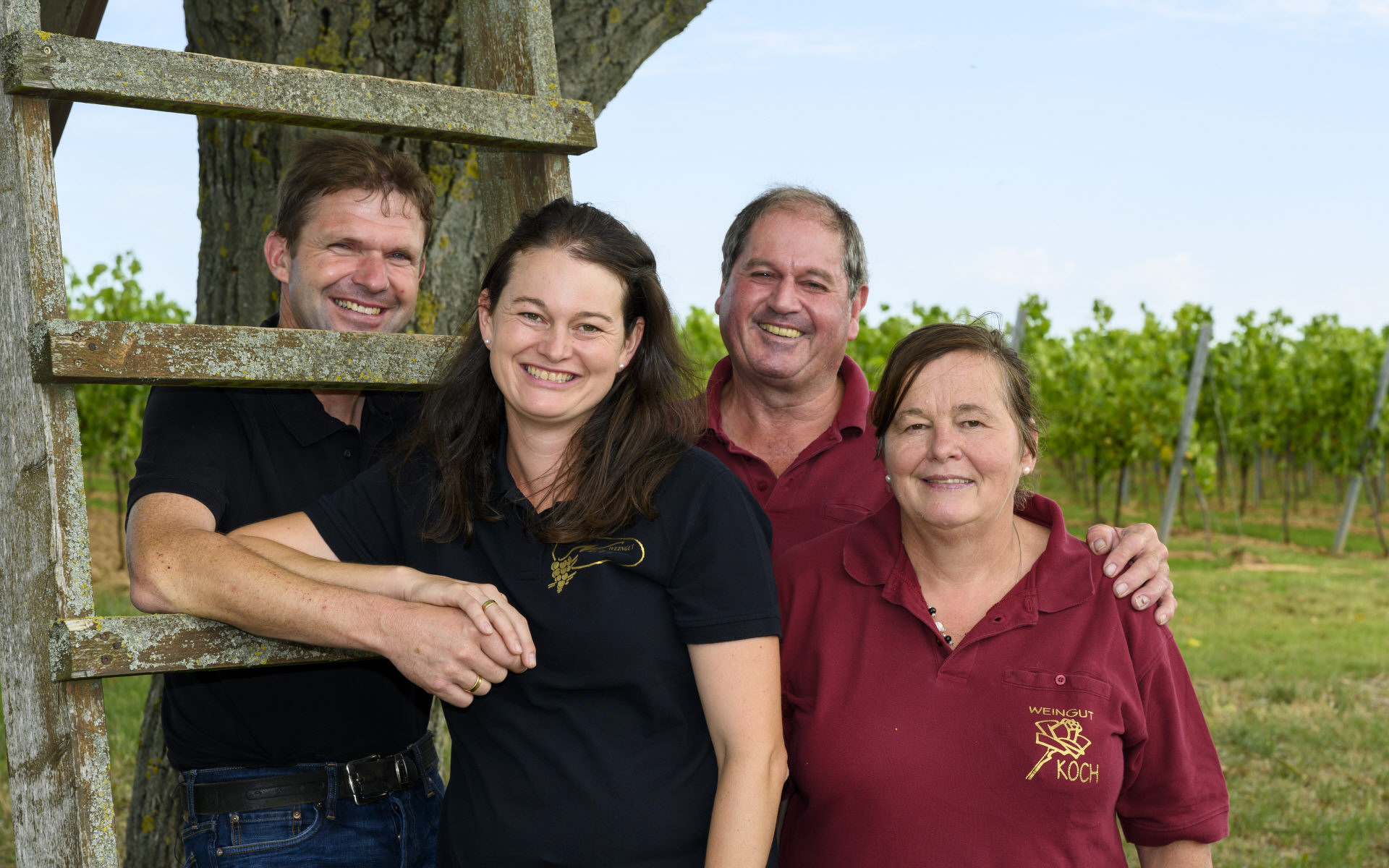 Vater Helmut Koch ist weiterhin mit Leib und Seele dabei und gibt seine wertvolle Unterstützung. Hand in Hand mit der Natur, mit viel Herz und fundiertem Wissen, pflegen wir gemeinsam unsere Lagen. Der Erfahrungsschatz mehrerer Generationen und modernste Technologie von heute: So bauen wir unsere Trauben zu Tropfen für echte Genießer aus.